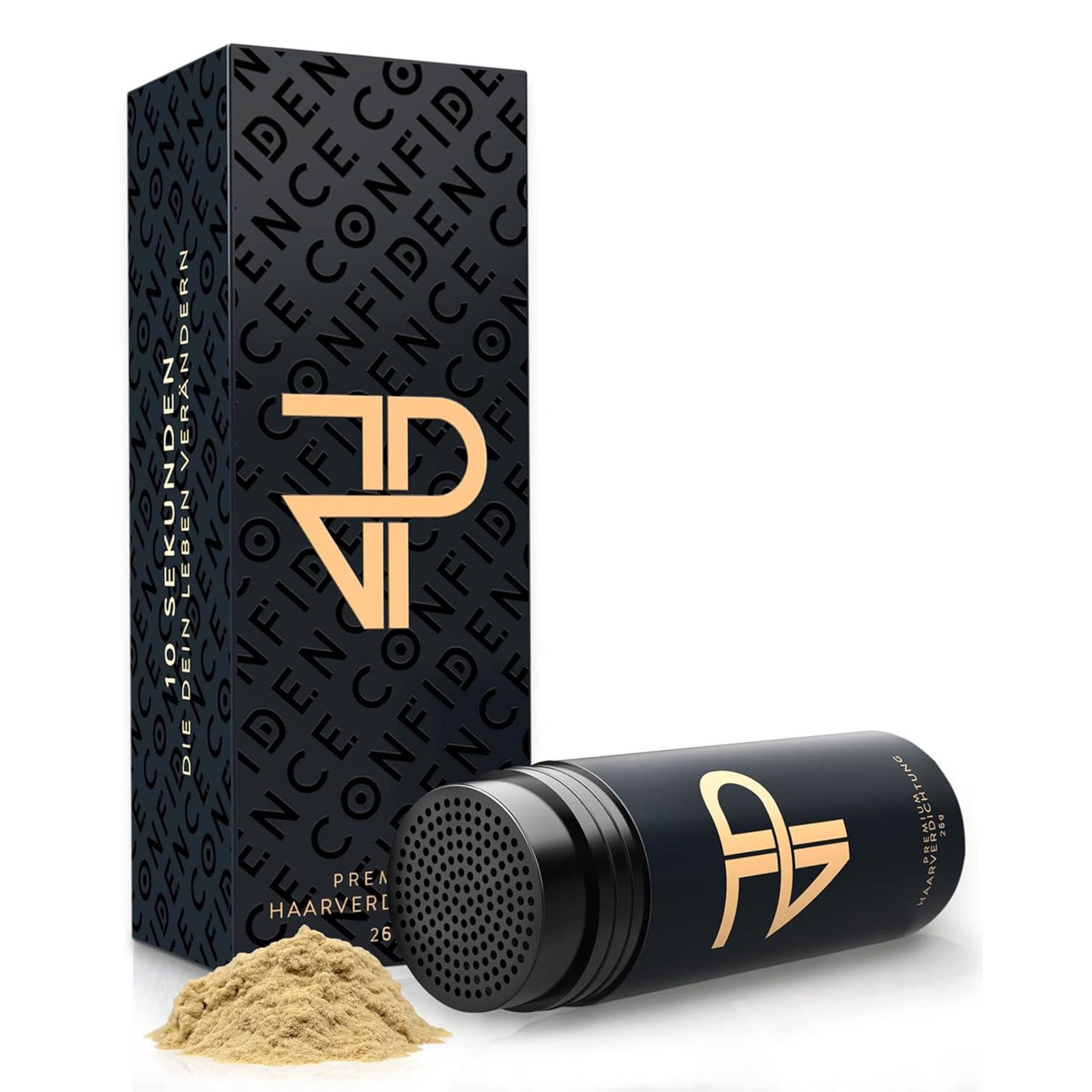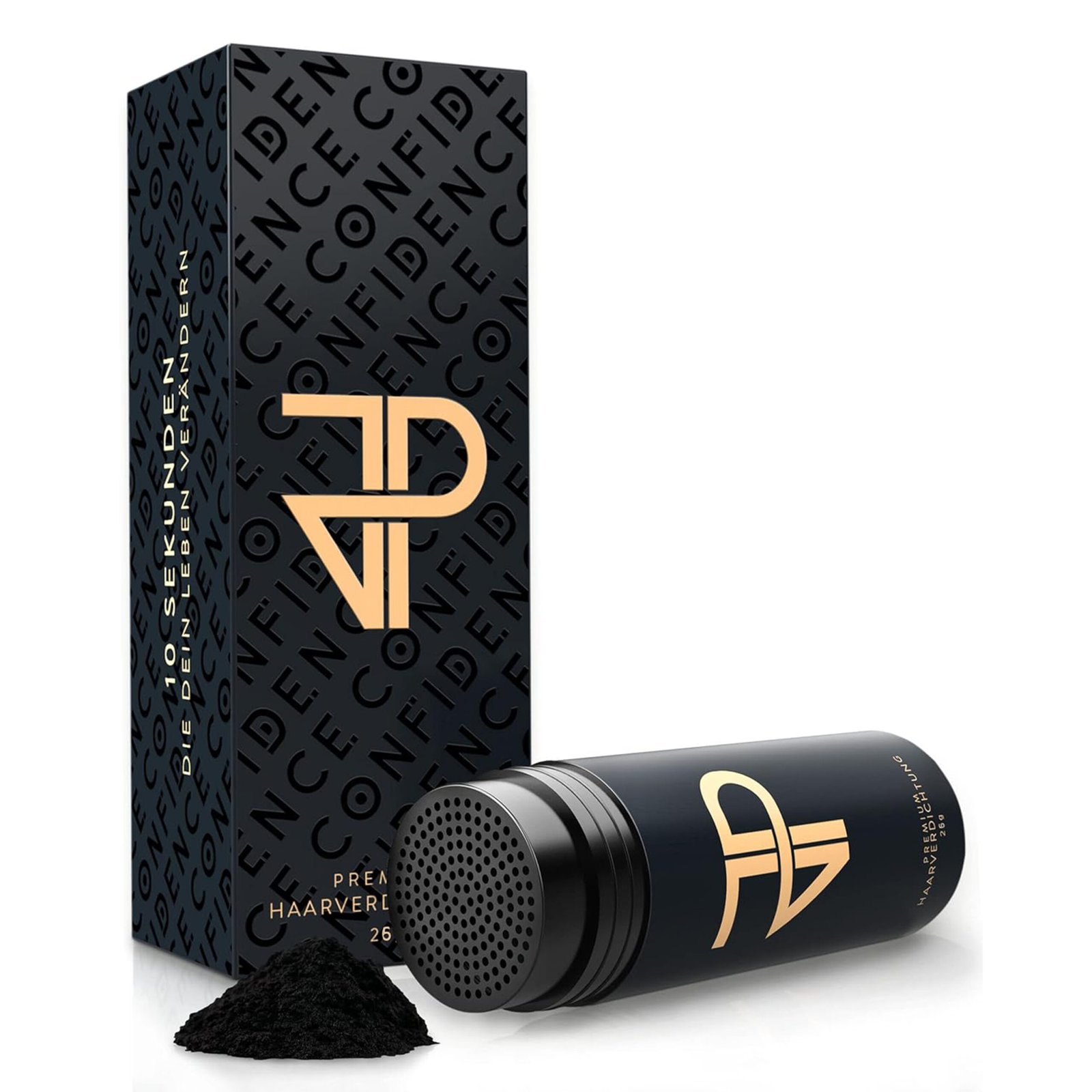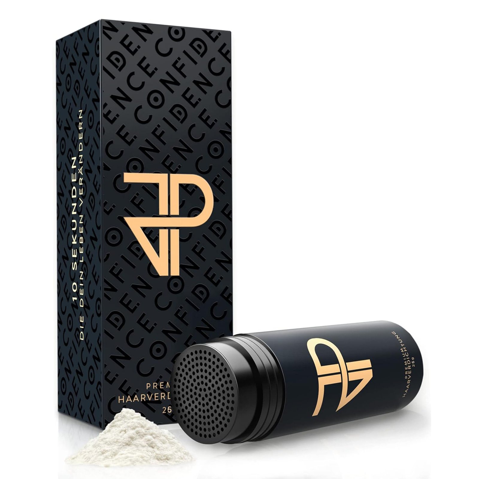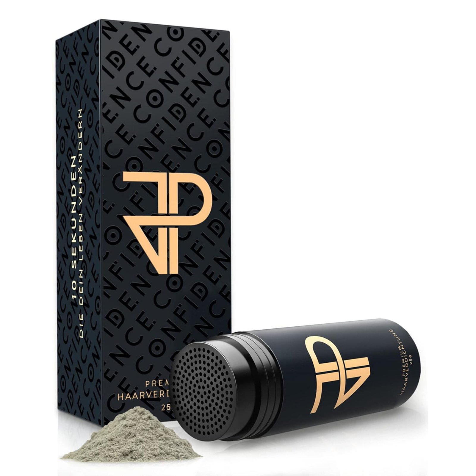 JP Confidence Streuhaar deckt ausgedünntes Haar sofort und makellos ab. Es hilft bei kahlen StellenGeheimratsecken und kreisrundem Haarausfall. JP Confidence Streuhaar sieht nicht nur völlig natürlich aus, es ist Dein Selbstbewusstsein aus der Dose. 10 Sekunden, die dein Leben verändern. GARANTIERT!