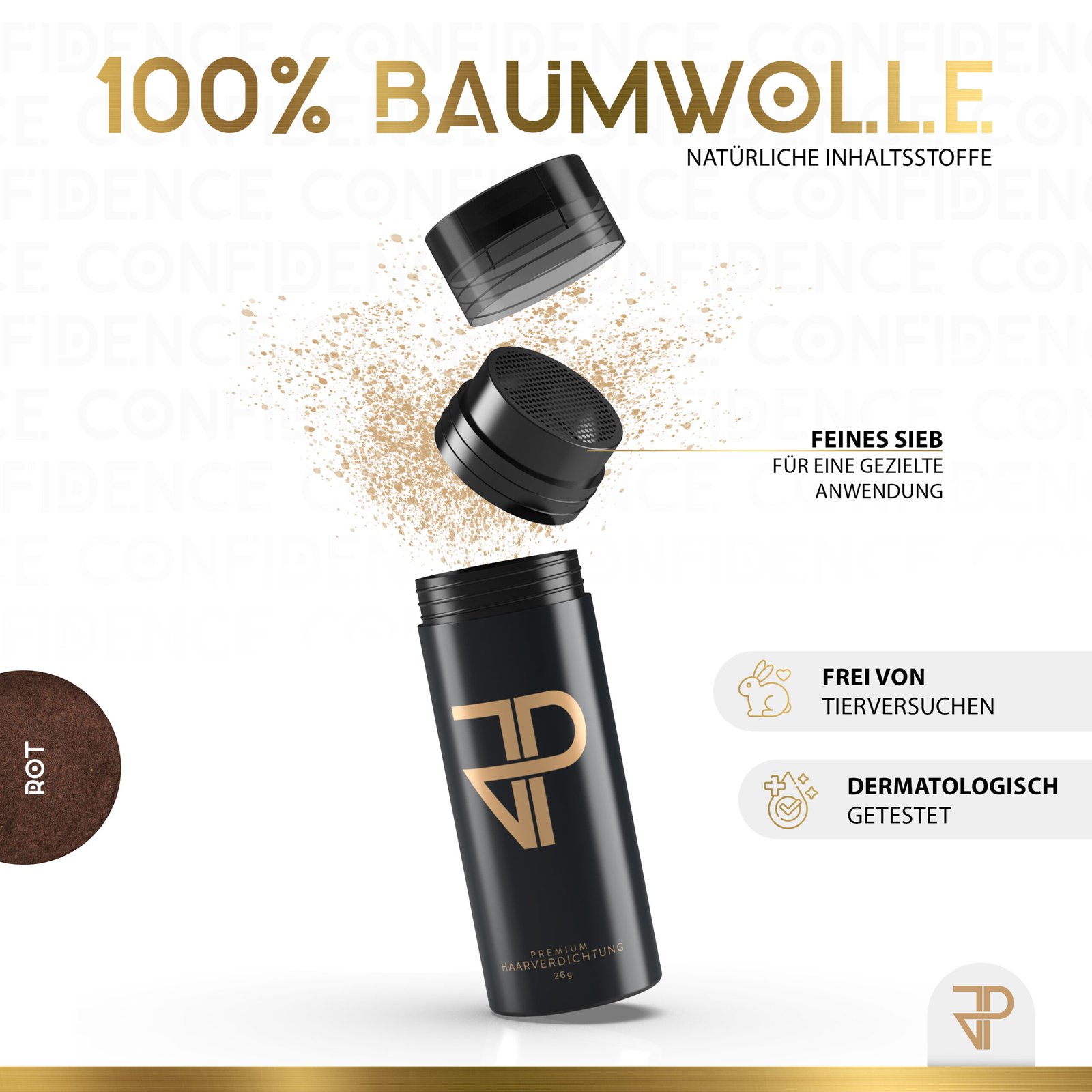 JP Confidence – Das Selbstvertrauen aus der Dose. Unser Streuhaar karschierte zuverlässig kahle Stellen auf deinem Kopf. Schnell, einfach, sicher. Endlich kannst du dich wieder wohl fühlen ohne an deine lichten Stellen zu denken. Egal ob im Job, beim Sport oder beim Feiern, JP Confidence ist dein Retter in der Not.